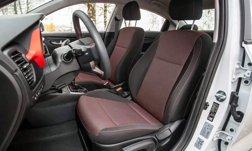 Сиденья с отделкой тканью Style и красной прострочкой
